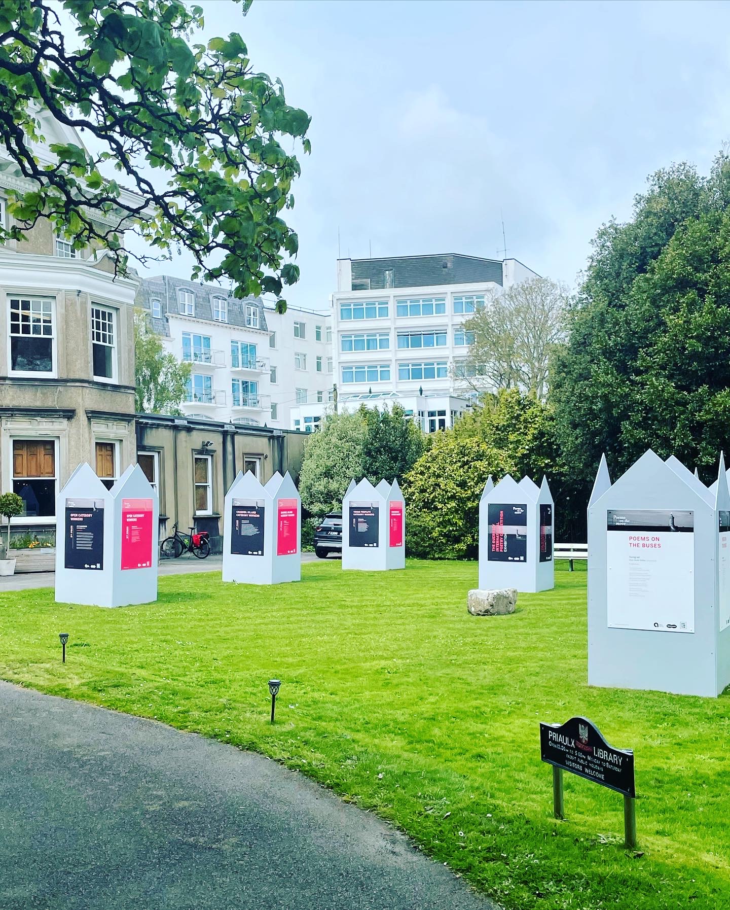 These poems were displayed in the Priaulx Library gardens in St Peter Port, Guernsey from 2 May to 16 June 2023 and will be on Guernsey buses from the summer. A winners’ reading took place on 10 May at Guilles Allès Library as part of Guernsey Literary Festival.